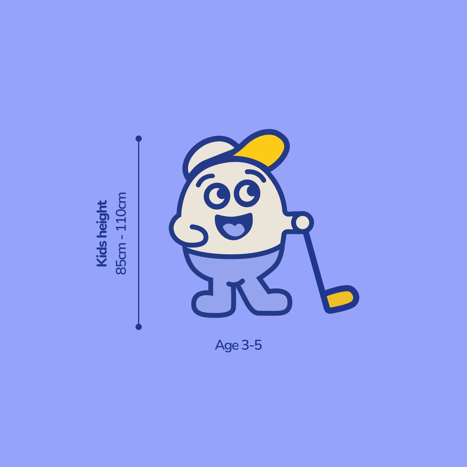 All our golf clubs are specially designed for young children aged 3 to 5 years. They are perfectly sized for kids with a height between 85 cm and 110 cm, ensuring a comfortable grip, proper posture and an enjoyable first golf experience.